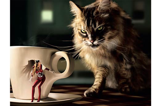 Dans une ville sans loi, dans un style de BD américaine des années 40, Eugenio Recuenco photographie des superhéroïnes sensuelles rendues invincibles par l’espresso Lavazza. L’utilisation habile des lumières et des couleurs remplit chaque scène de rappels parfumés du café. Eugenio Recuenco est considéré comme l’un des photographes contemporains espagnols les plus créatifs, mondialement célèbre pour son travail dans le domaine éditorial et publicitaire. Il a un style très personnel, défini comme « cinématographique » et « pictural ».